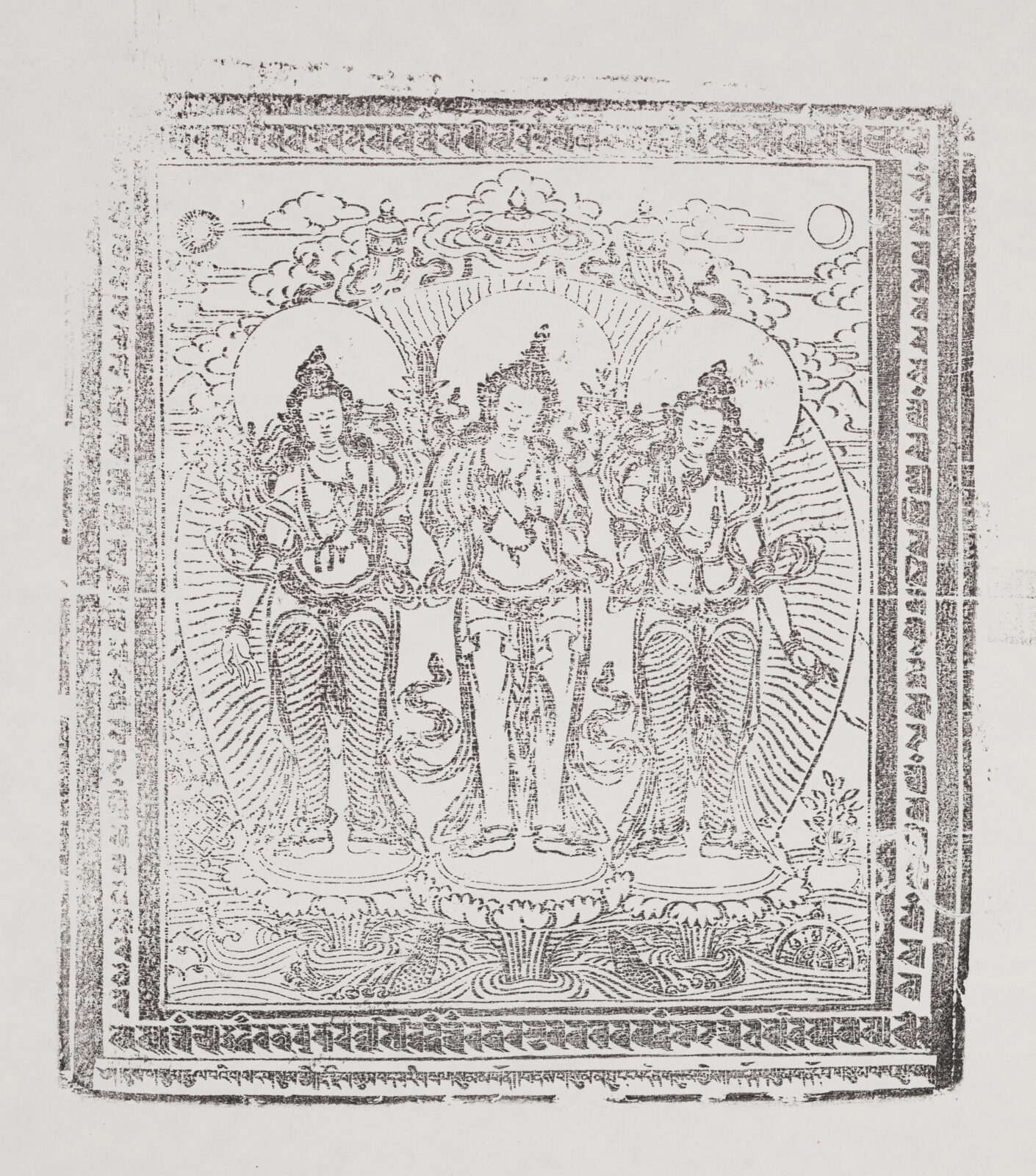This woodblock print was printed at the Derge Printing House in the Kham region of southeastern Tibet (modern-day Ganzi, Sichuan Province, PRC). Founded in 1729, it is one of the largest and most important producers of traditional Tibetan woodblock prints. This is said to be one of the older woodblock compositions still being used to produce prints.