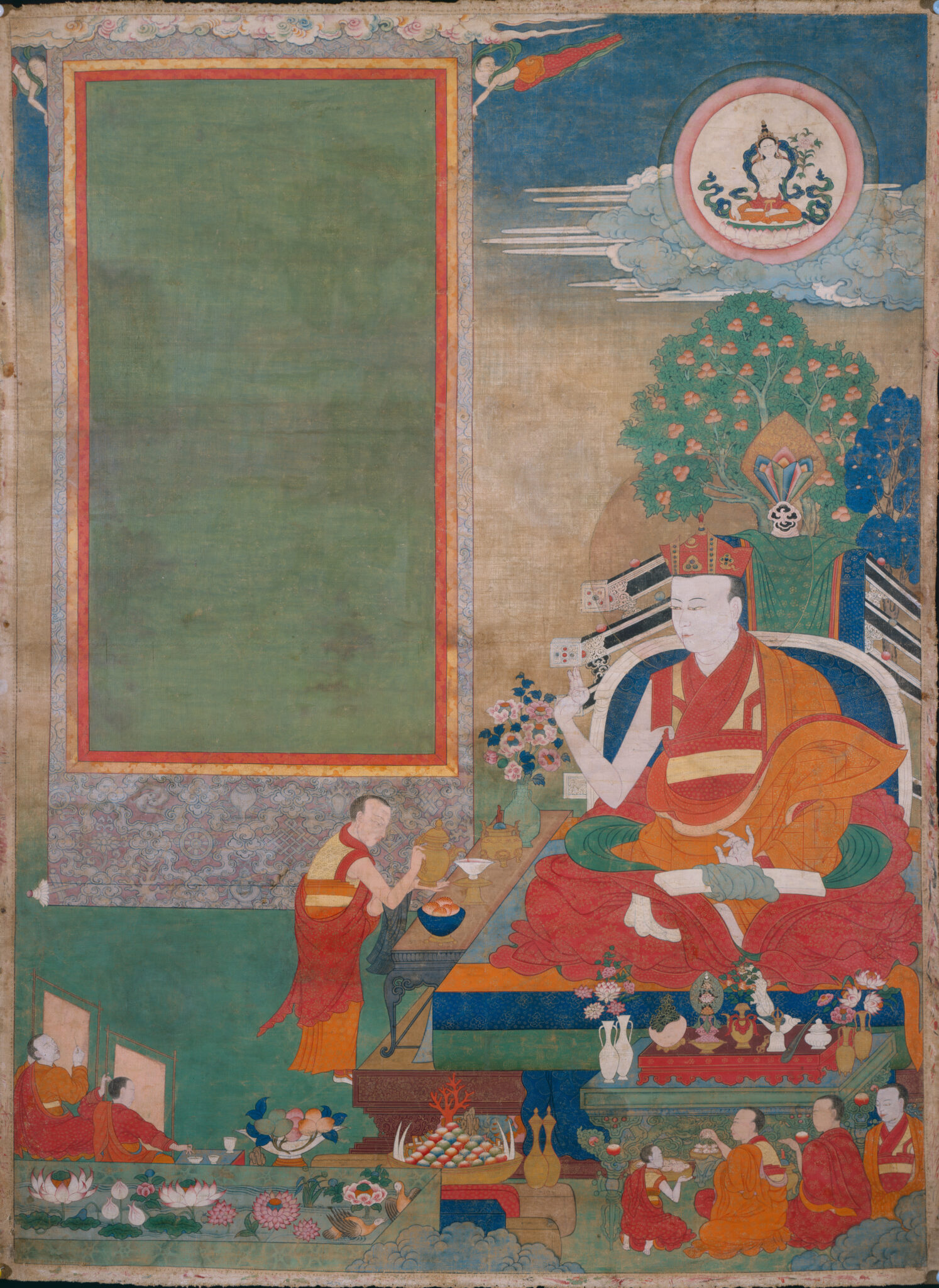 Situ could paint in at least two different styles—Menri and the Encampment style—and was a keen observer of early masterpieces and different styles of painting. He was strongly motivated to cultivate, patronize, and preserve what remained of the Encampment style, the painting tradition of his own now-endangered religious school. Three paintings attributed by inscription to Situ Panchen’s own hand have been brought together for the first time in this exhibition.