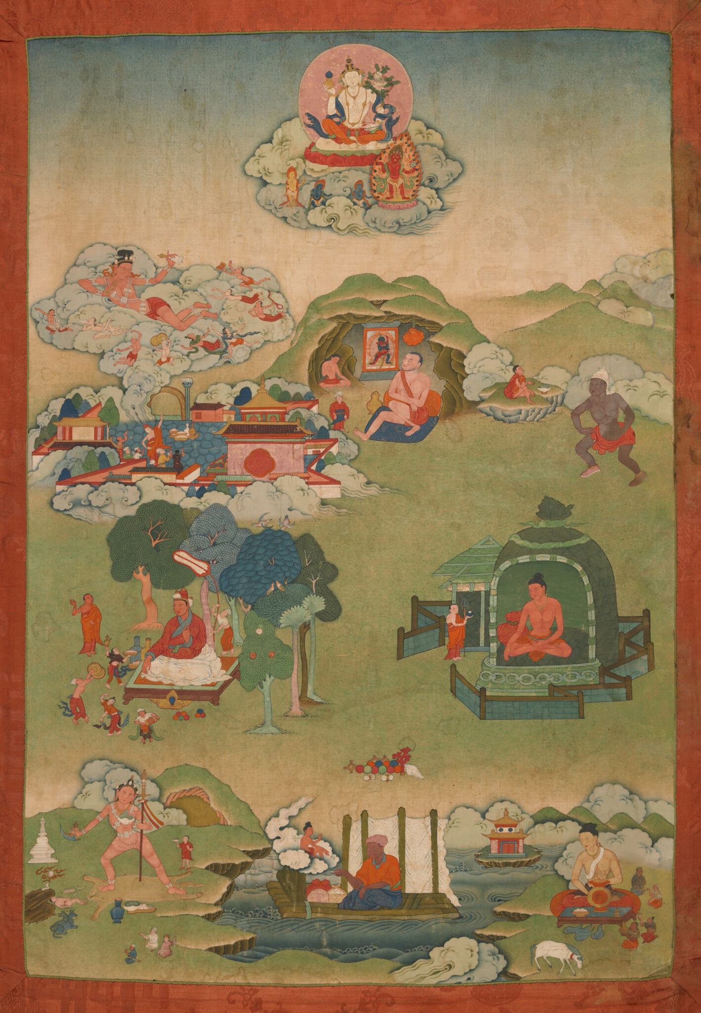 Eight Great Tantric Adepts (From a Pelpung Monastery eleven-painting set of The Eighty-four Great Tantric Adepts); Kham Province, Eastern Tibet; 19th century; pigments on cloth; Rubin Museum of Himalayan Art, Purchased from the Collection of Navin Kumar, New York; C2005.22.1